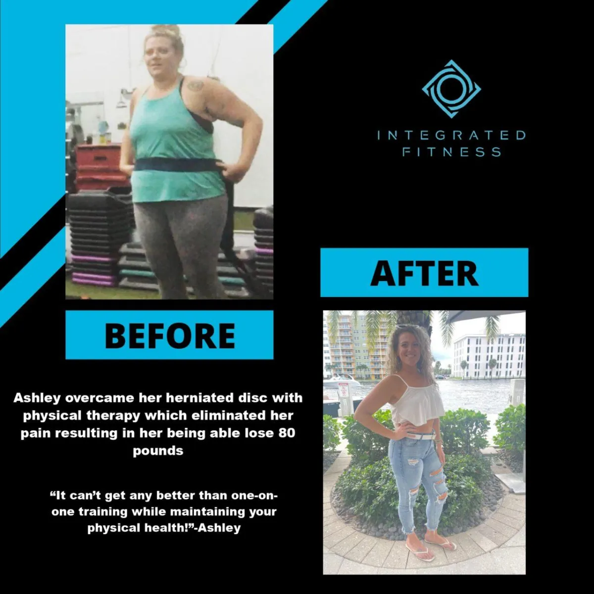 Where our clients experience the difference from the old way of traditional, generic fitness programs to a Doctor led customized fitness solution so they can Look Better, Feel Better, & Live Better longer; claiming the spoils of all their hard work & feeling empowered (10, even 15 years younger) without the pain, frustration and endless hours in the gym is only attainable with The Integrated Fitness Solution.